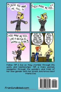 Follow Tiff and Eve as they stumble through life, work, and relationships. Tiff, a trans woman, navigates through the wonders and trials of her new gender with her brash, boisterous best friend, Eve. Styled to look like a classic newspaper comic strip,